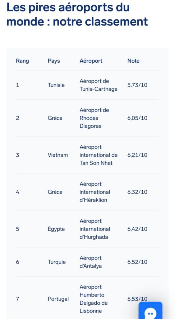 كشف تقرير عالمي يستند إلى تقييمات المسافرين حول العالم عن تجربة الركاب في المطارات، أن مطار تونس قرطاج الدولي يُصنف ضمن المطارات التي تواجه تحديات في بعض الخدمات.
