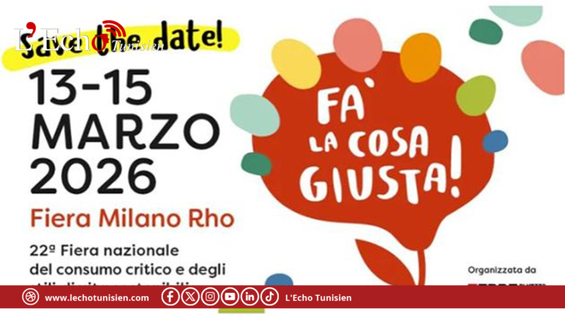 تم الإعلان عن فتح باب الترشحات لاختيار 5 فاعلين سياحيين تونسيين (متعهدي رحلات، وكالات أسفار، وشركات إدارة وجهات DMC) للمشاركة في الدورة القادمة للمعرض الوطني للاستهلاك المسؤول وأنماط الحياة المستدامة “Fa’ la cosa giusta!”، الذي سينتظم بمدينة ميلانو الإيطالية من 13 إلى 15 مارس 2026.
