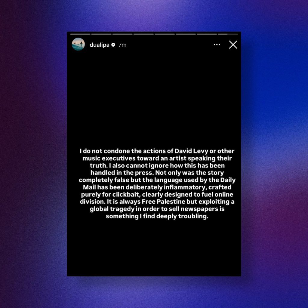في منشور عبر حسابها على إنستغرام، نفت دوا ليبا صحة الأخبار التي تداولتها صحيفة ديلي ميل بشأن إقالتها لوكيل أعمالها على خلفية موقفه من الفرقة الإيرلندية، معتبرة أن ما نُشر يدخل في إطار التضليل الإعلامي. وقالت: