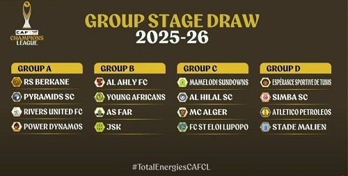 دارت اليوم الإثنين 03 نوفمبر 2025 بمدينة جوهانسبرغ في جنوب إفريقيا قرعة دور المجموعات لمسابقة رابطة الابطال الافريقية .