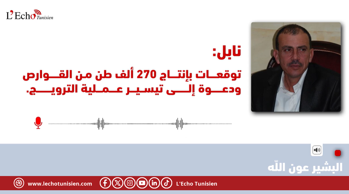 فيديو نابل توقعات بإنتاج 270 ألف طن مـن القوارص ودعوة إلى تيسير عملية الترويج 30 أكتوبر 2025 webmaster FacebookTweetPin Vues de l'article : 18