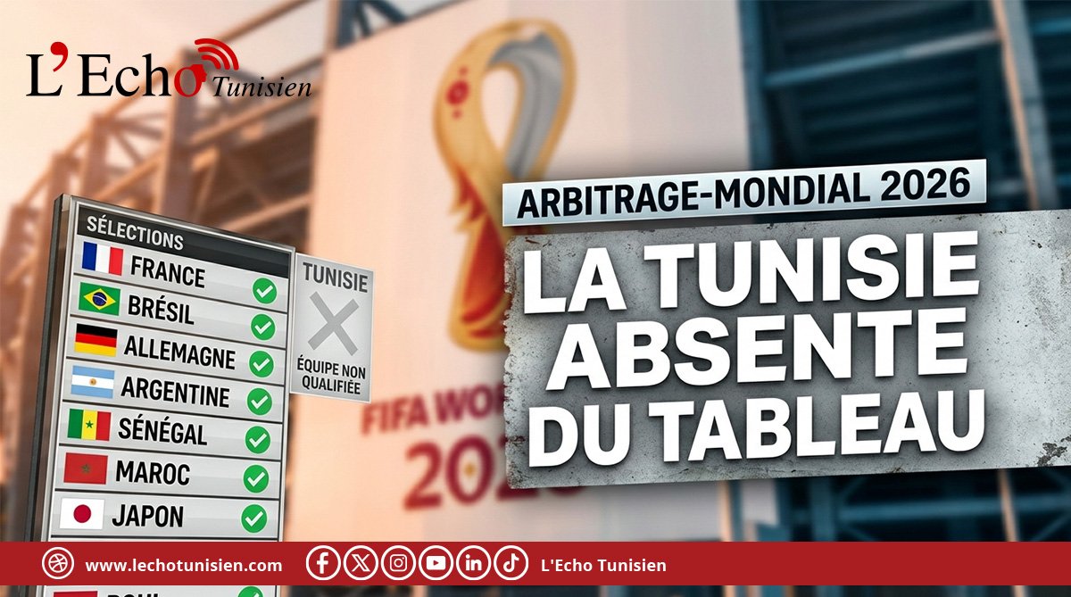 La FIFA a adressé aux fédérations membres une circulaire dévoilant le corps arbitral retenu pour officier lors de la prochaine Coupe du monde. Dans cette sélection, aucun officiel tunisien n’apparaît, que ce soit comme arbitre principal, juge de touche ou arbitre vidéo (VAR).