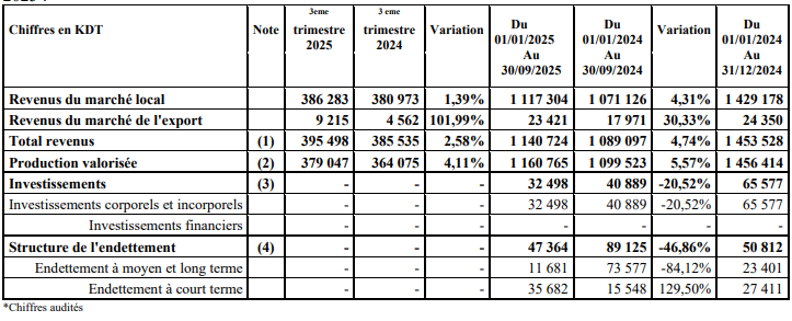 La vigueur du groupe transparaît également dans ses indicateurs industriels. La production valorisée a atteint 1 160,7 MD, affichant une hausse de 5,57 % par rapport à la même période de l’exercice précédent. Cette croissance reflète une optimisation continue des outils de production, confirmant l’amélioration de l’efficacité opérationnelle du groupe.