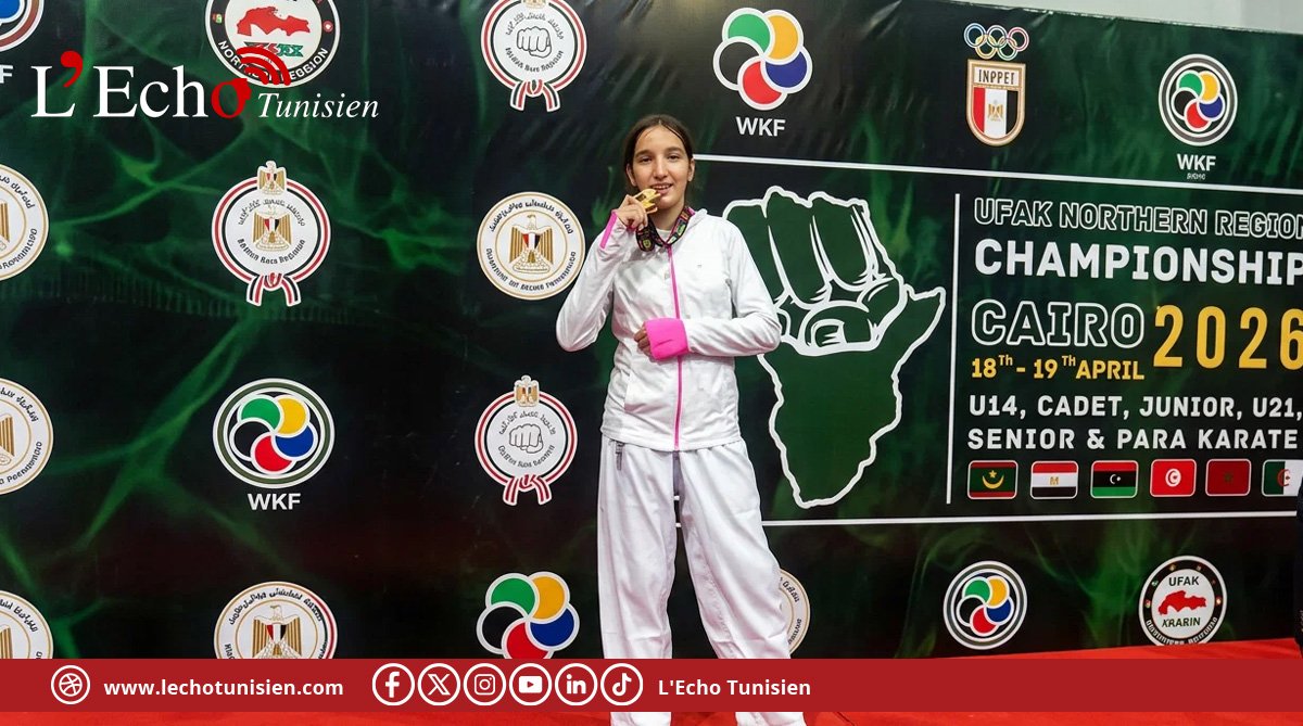 La jeune athlète tunisienne Meriem Rahali, scolarisée au collège pilote du Kef, a offert une nouvelle médaille d’or à son pays lors du Championnat des pays d’Afrique du Nord de karaté, qui se déroule actuellement au Caire. L’information a été communiquée dimanche, le 20 avril 2026 par le ministère de l’Éducation.