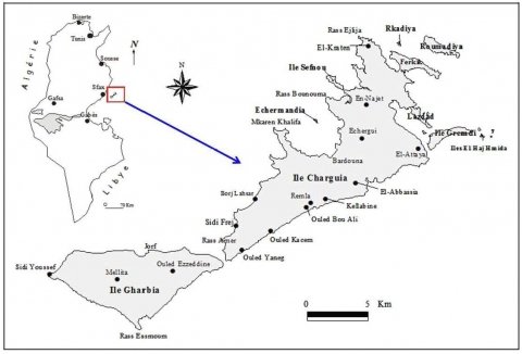 L’archipel des Kerkennah est situé au sud-est de la Tunisie à 20 km des côtes de la ville de Sfax. L’archipel est constitué principalement par deux îles : l’île Chargui et l’île Gharbi.