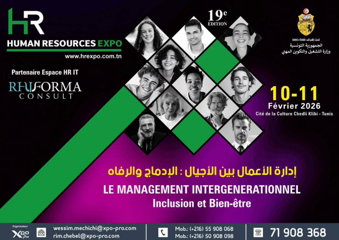 Xpo Pro organise la 19ème édition du salon HR expo, sous l’égide du linistère de l’Emploi et la Formation Professionnelle, qui se déroulera les 10 & 11 février 2026 à la Cité de la Culture – Tunis