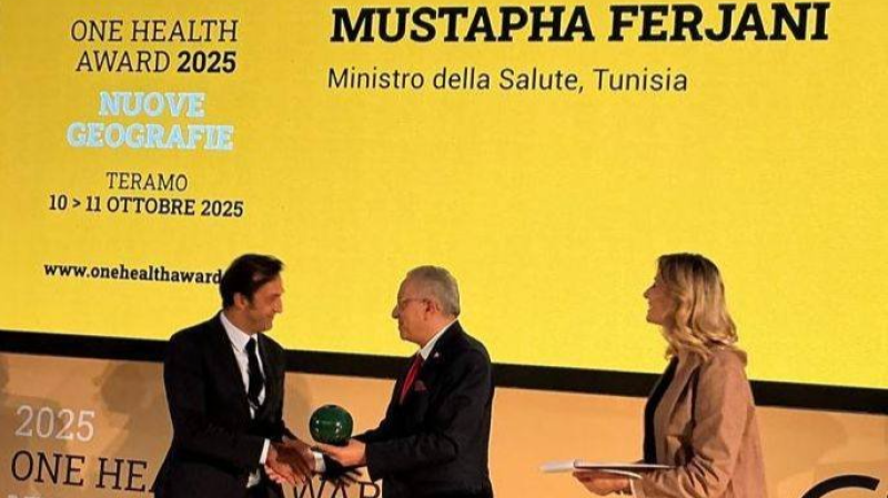 Le ministre de la Santé, le Dr Mustapha Ferjani, s’est vu décerner, vendredi dernier, le prestigieux « One Health Award 2025 » lors d’une cérémonie qui s’est tenue à l’Institut Teramo, en Italie. Cette récompense consacre le rôle précurseur de la Tunisie dans la mise en œuvre de l’approche « Une seule santé » sur la scène internationale.