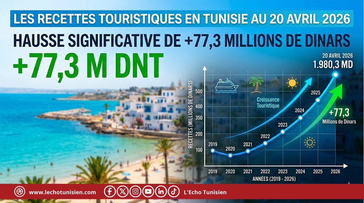 Les recettes touristiques en hausse de 77,3 millions de dinars au 20 avril 2026