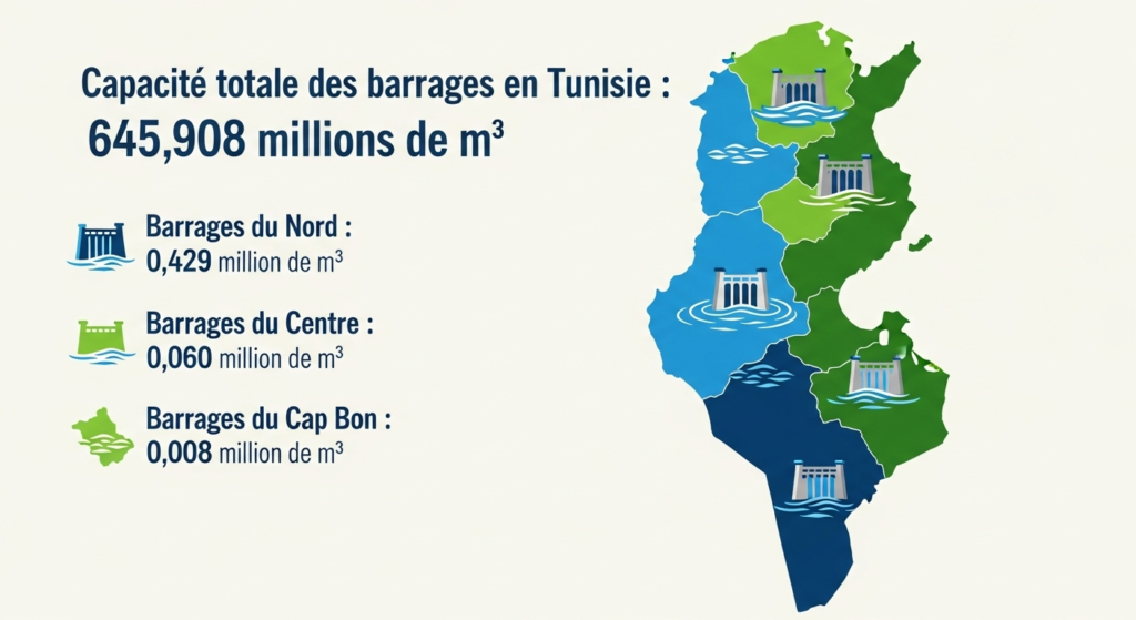 Malgré ce contexte, la consommation reste soutenue. Les prélèvements effectués ce lundi ont atteint 1,655 million de m³, principalement concentrés dans le Nord du pays (1,613 million de m³). Les régions du Centre et du Cap Bon ont prélevé respectivement 0,034 million de m³ et 0,009 million de m³.