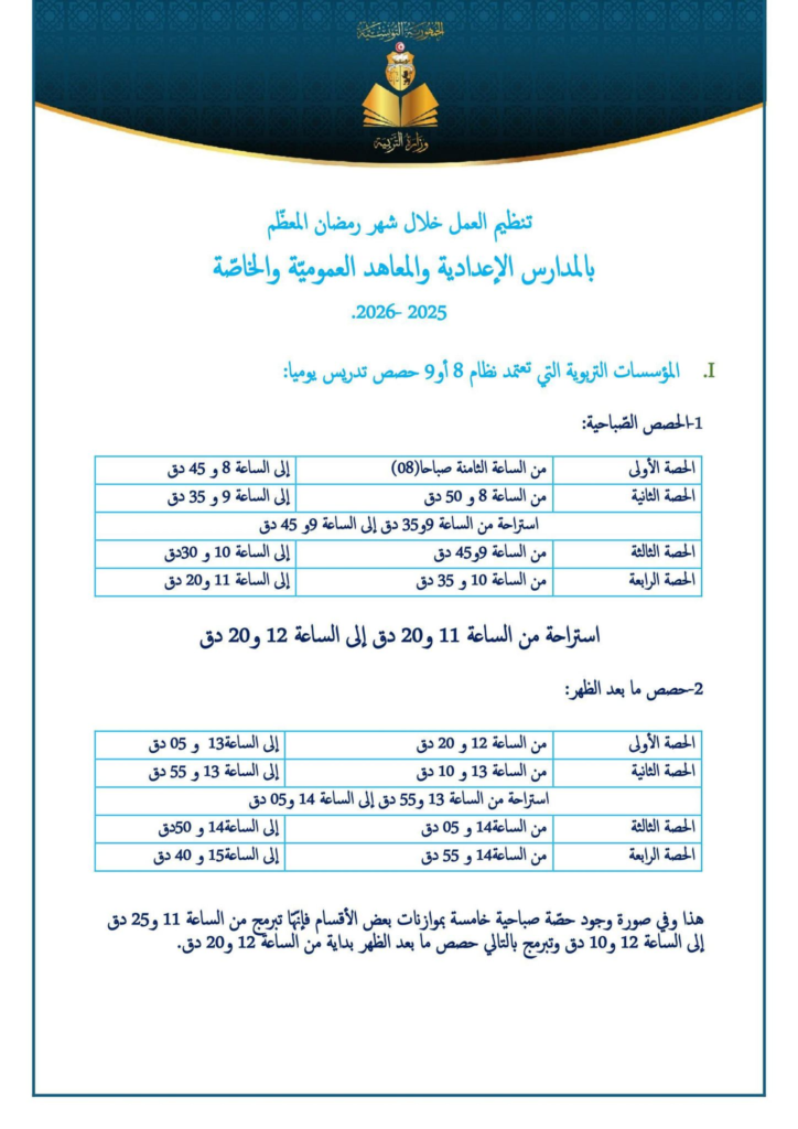 Cet ajustement temporaire a pour objectif de prendre en considération les contraintes liées au jeûne et d’assurer des conditions d’enseignement adaptées aux élèves pendant cette période.
