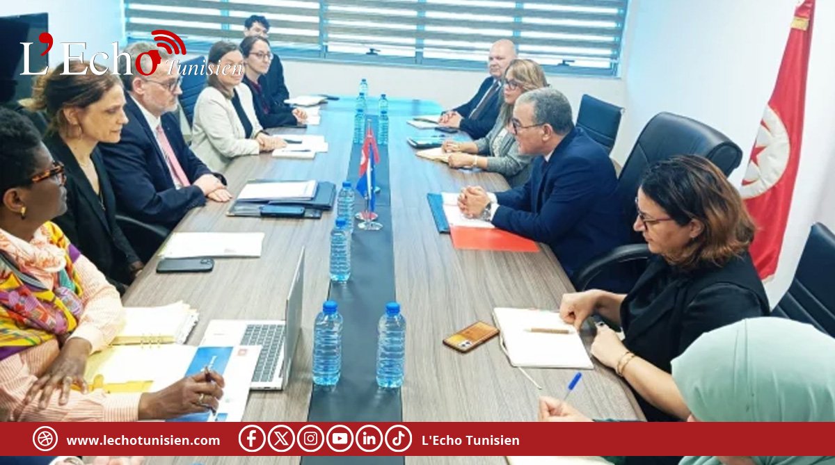 Une réunion de travail consacrée à l’examen du portefeuille des projets financés par la Banque européenne d’investissement (BEI) s’est déroulée jeudi au siège du ministère de l’Économie et de la Planification. La rencontre a été présidée par le ministre Samir Abdelhafidh, en présence d’une délégation de l’institution européenne conduite par Ulrich Brunnhuber, directeur de la coopération pour la région Moyen-Orient et Afrique du Nord, ainsi que d’Anna Barone, responsable du bureau de la BEI à Tunis.