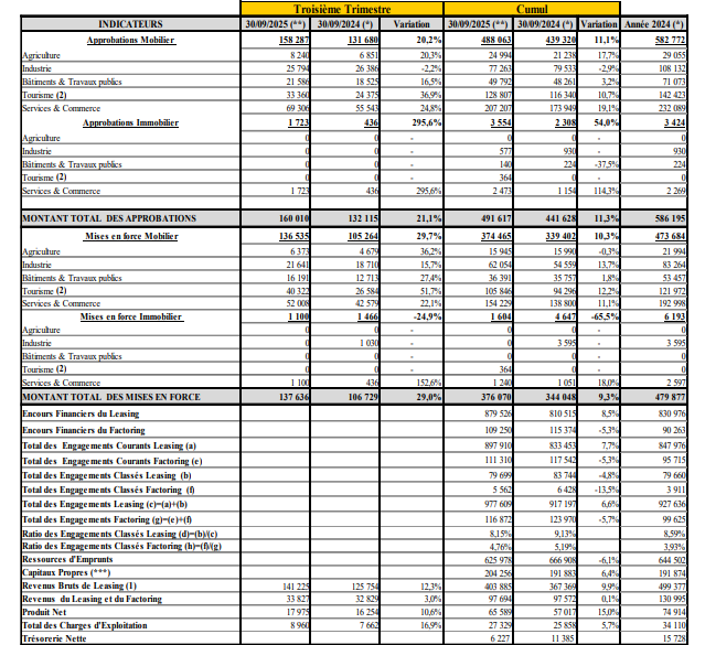 Le point d’équilibre le plus marquant de ce bilan trimestriel réside dans l’amélioration de la qualité du portefeuille. La société annonce en effet une baisse sensible des engagements classés, c’est-à-dire des crédits à risque. Le segment Leasing affiche une réduction de 4,8 %, tandis que le segment Factoring enregistre une baisse bien plus prononcée de 13,5 % par rapport à septembre 2023. Cette tendance indique un meilleur contrôle du risque et une gestion active des dossiers sensibles.