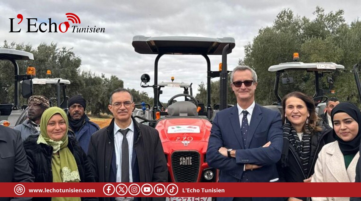 Ce lot, financé par la Coopération italienne à hauteur d’environ 6,5 millions d’euros, comprend des tracteurs équipés de citernes et de remorques, tous de fabrication italienne. Il est destiné à renforcer les capacités de production de l’OTD, et particulièrement de l’agro-combinat de Chaal, qui avec ses 30 000 hectares, est le plus grand d’Afrique du Nord et un pilier stratégique, notamment pour la culture de l’olivier.